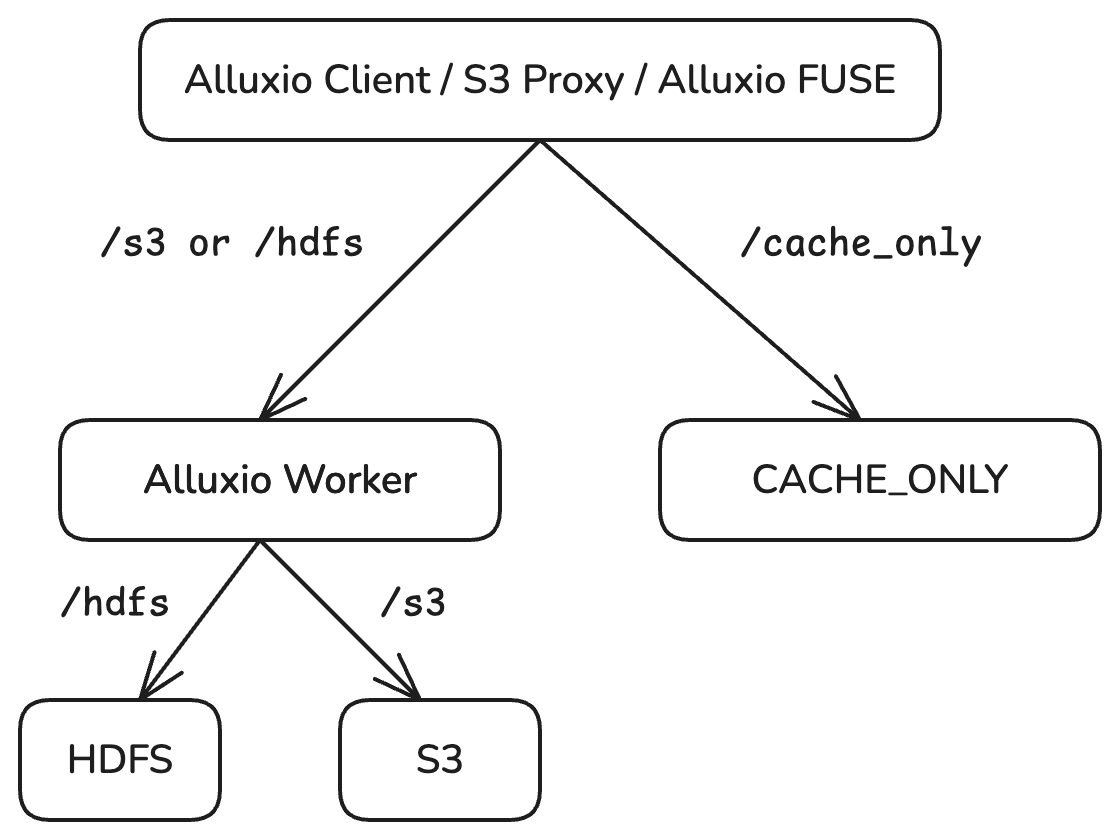 2. **文件读取错误**：如果 Alluxio 在读取 `CACHE_ONLY` 中的文件时遇到错误，客户端将回退为直接从 UFS 读取该文件，**不会重新缓存到 Alluxio**。