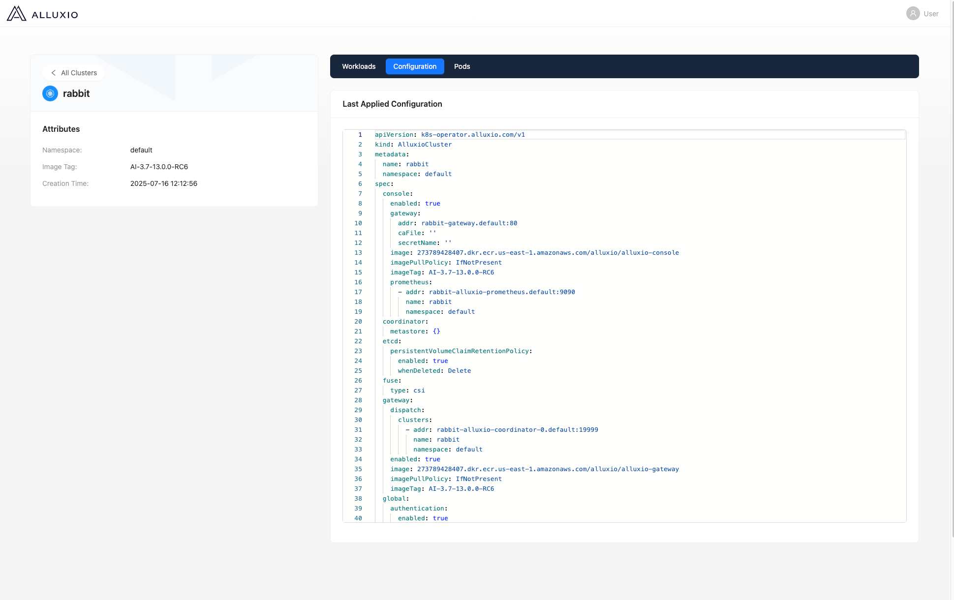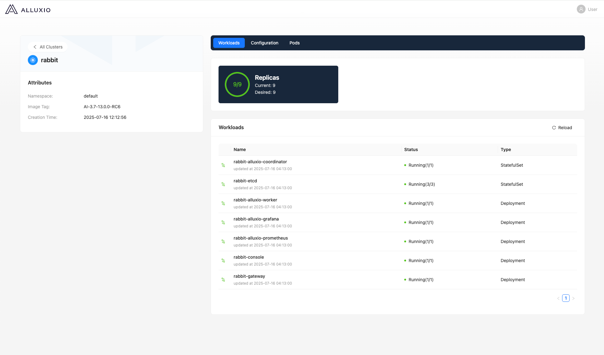 The Management Console provides Alluxio cluster deployment and management capabilities. For deployed clusters, you can view and manage them through the following methods: