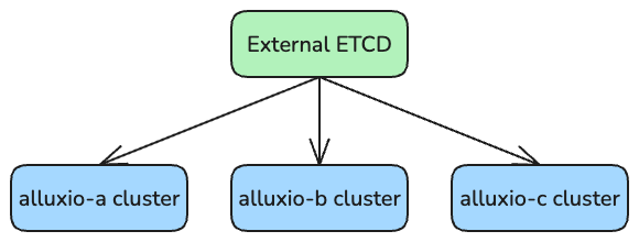 Each Alluxio cluster operates with its own dedicated ETCD instance. This pattern provides the highest isolation.