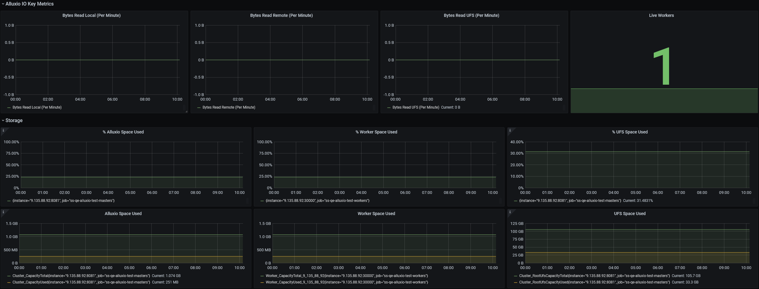 * Timeseries for Alluxio space and root UFS space percentage usage information