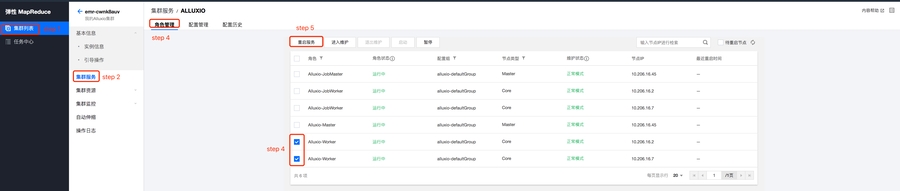 在配置下发后,有些配置需要重启Alluxio服务才能生效: